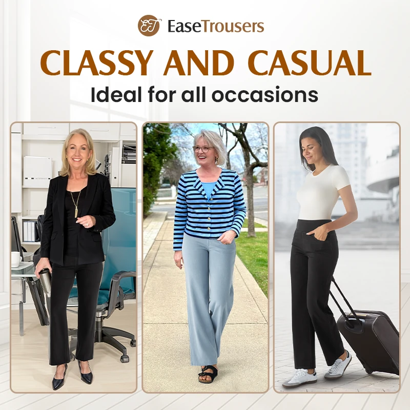 Elevate your wardrobe with EaseTrousers - with a super elastic waistband that makes dressing up a breeze, and stretchy fabric in a straight-leg fit that exudes your confidence and elegance.